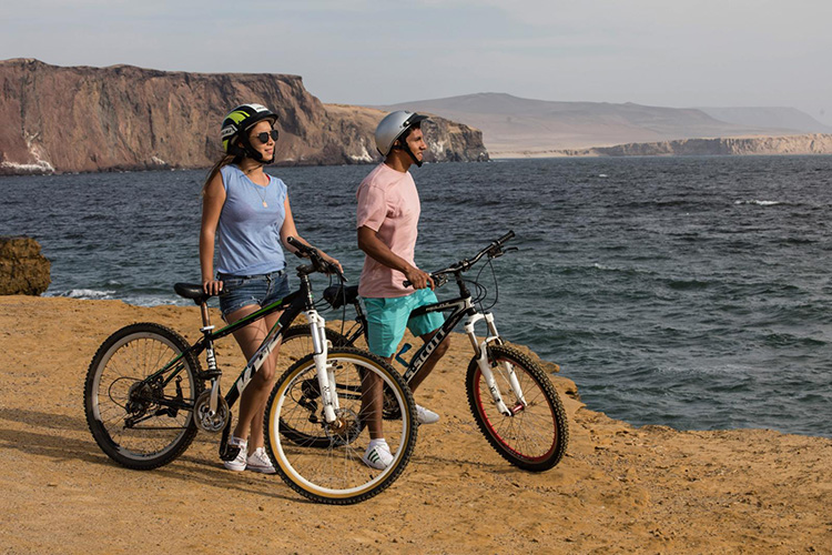 Salir en Bicicleta es disfrutar de la naturaleza, estar en contacto con el desierto rocoso y costero, podrá ir recorriendo al ritmo que a usted le guste, tranquilo y sin presión de horario, ya que puede tomarse el tiempo que usted desee recorriendo la Península de Paracas y lo mejor de este lugar es que es un terreno propicio para andar en bicicleta y más aun siendo un lugar seguro para el turista, propio de una reserva nacional.